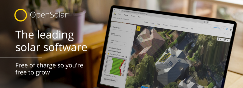 OpenSolar is the leading solar software with the mission to scale solar globally by providing installers with innovative software technology and an equally innovative business offering – the world’s first entirely free-to-use design and sales platform.