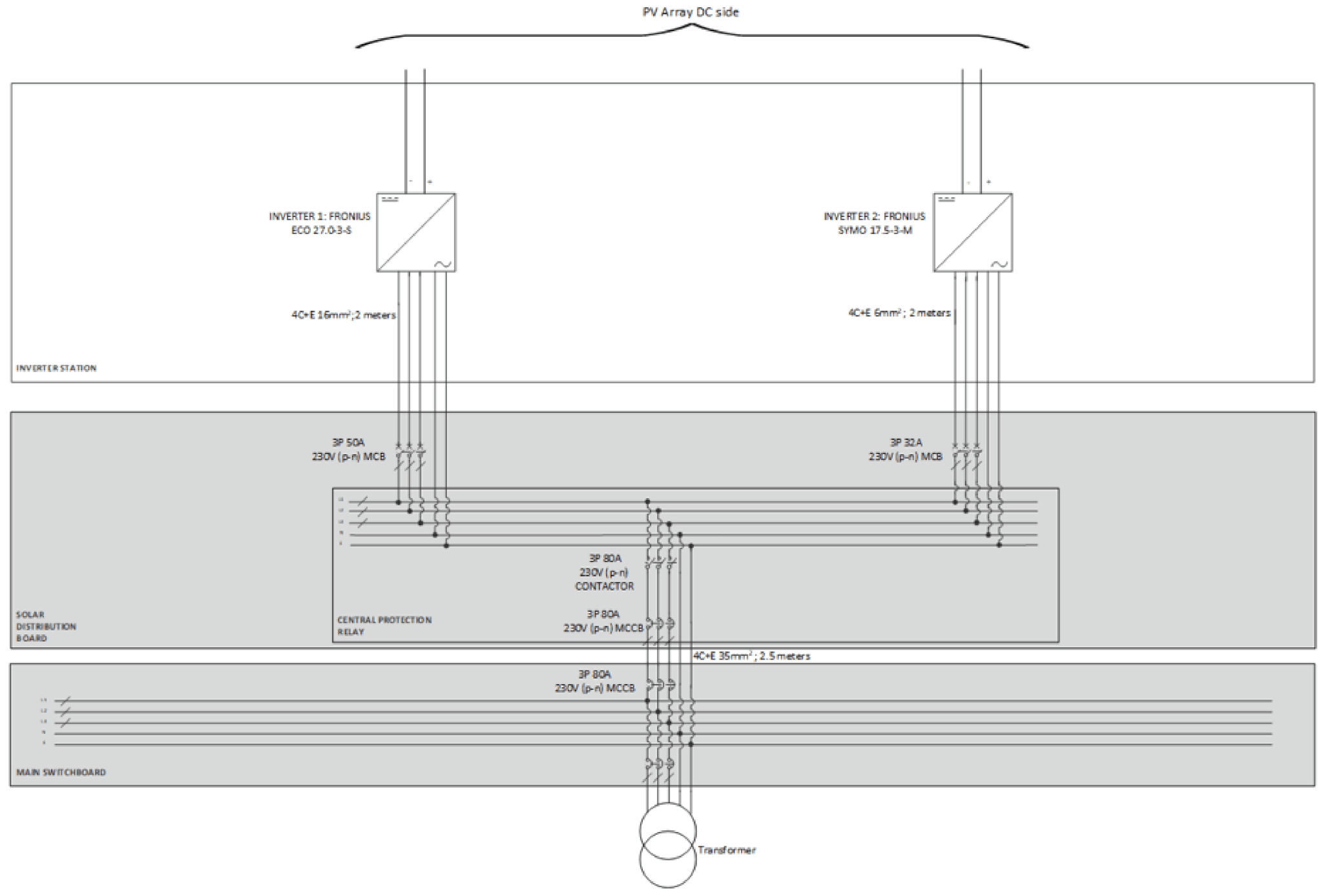 The location of the central protection shall be placed as close to the main switch (grid supply) of the installation as practicable. Figure 1 below shows the location of the central protection relay and its location with reference to the Main switchboard.