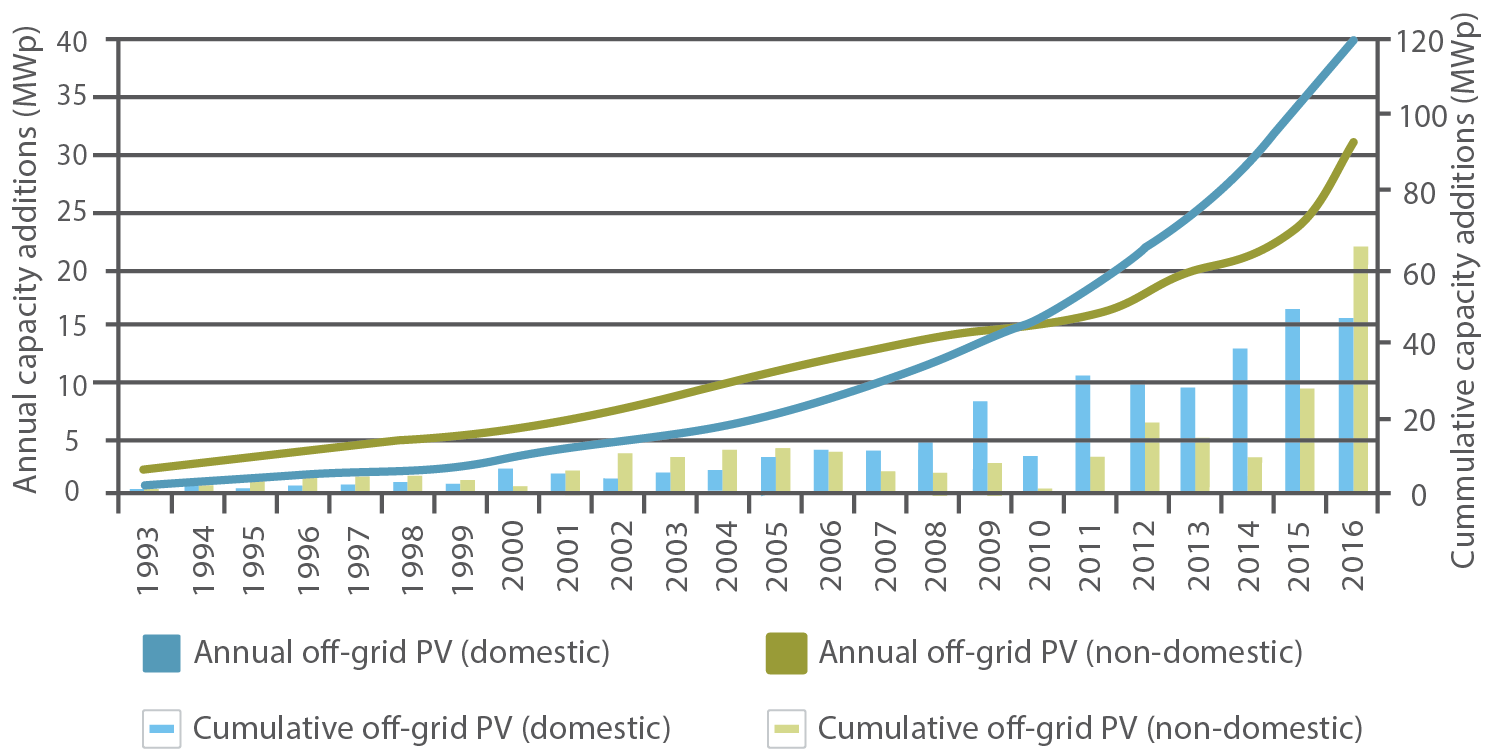 Figure 1: Annual and cumulative capacity installed off-grid