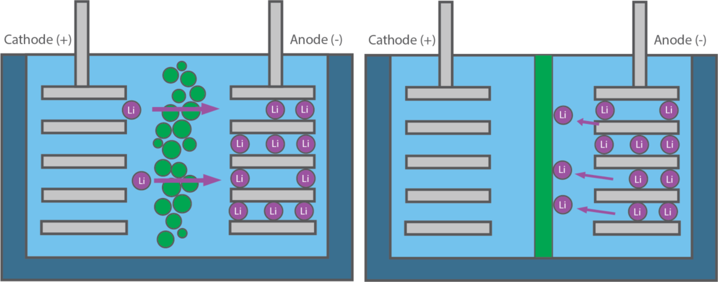 Lithium ion cells should also include a separator which is made from material that facilitates thermal shutdown. These separator materials change state, creating a physical barrier, at a temperature just below thermal runaway and prevent the passage of ions.