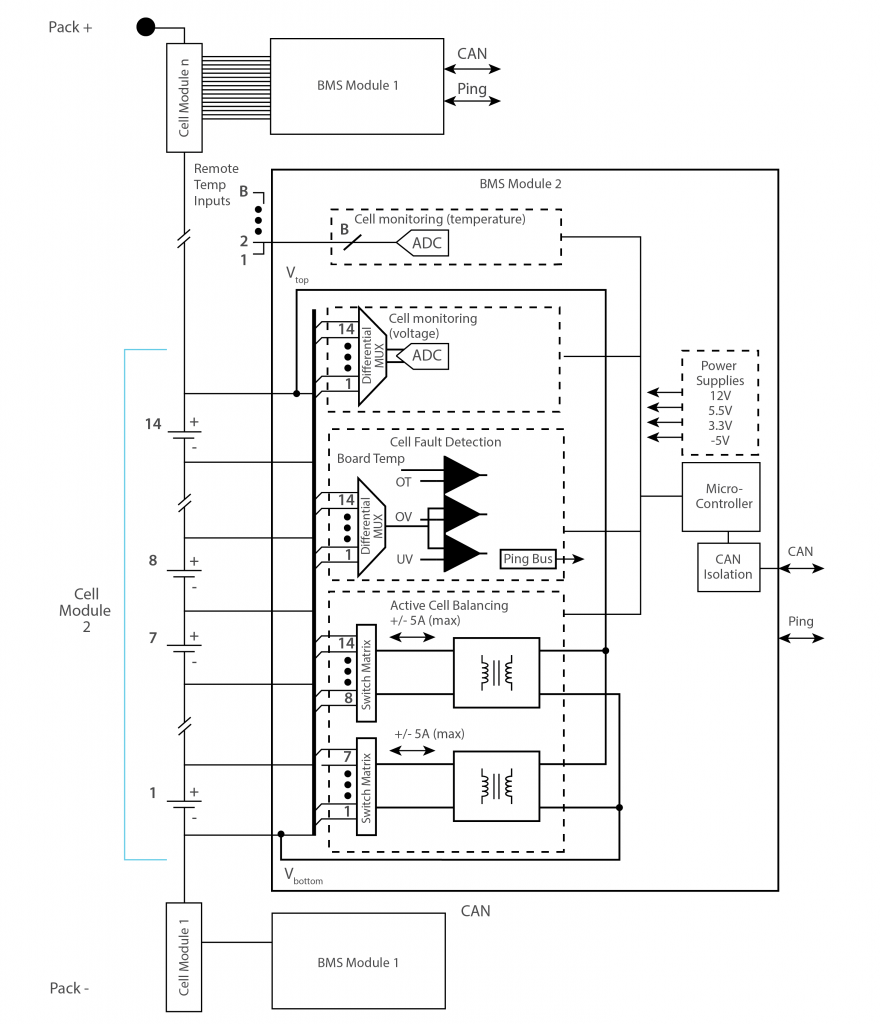 The principal role of the BMS is to facilitate the safe charging and discharging of lithium ion batteries. There are many different types of BMS and various topologies used however the aim is the same: to keep each cell within tolerance while cycling the battery according to the needs of the user. Keeping each cell within tolerance not only ensures battery longevity but also plays a critical role in the battery safety.