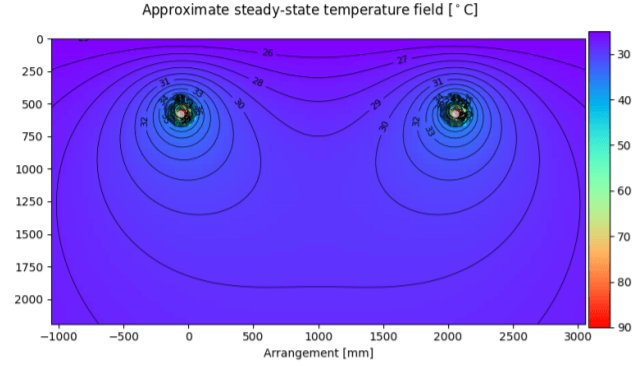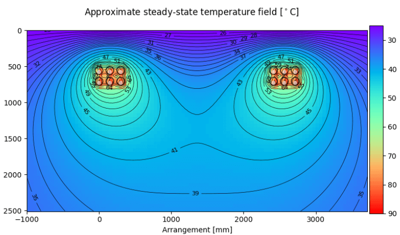 Figure 9: Case 3.1 – 2 circuits with 2m clearance (thermal heat map simulation)
