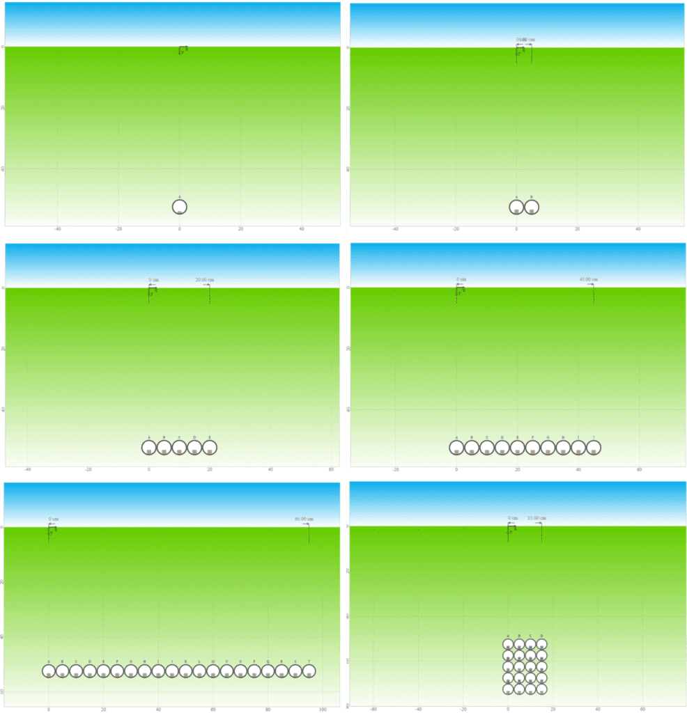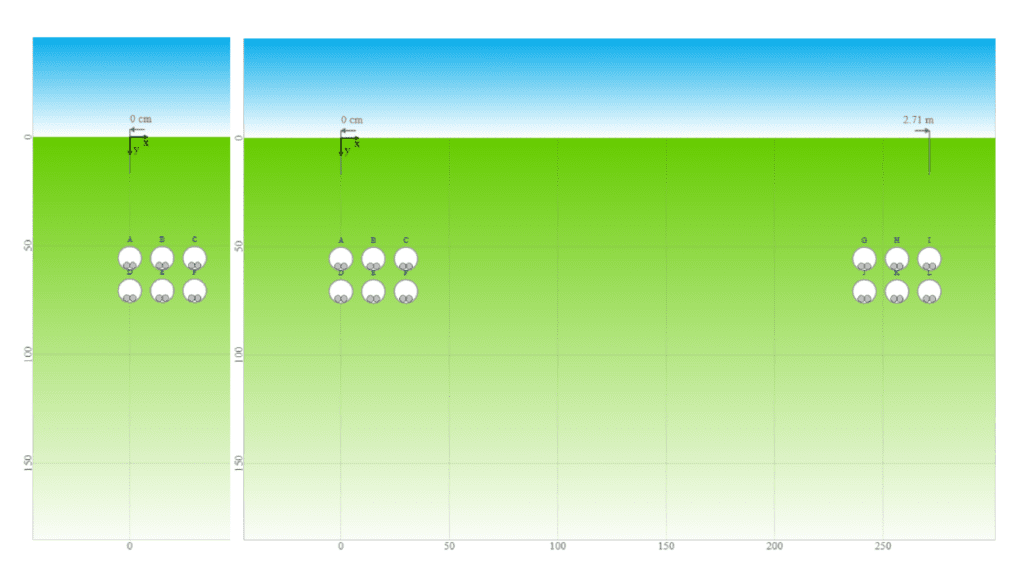 In the next case, we will repeat the experiment above but with a trench composed of 6 conduits, arranged in two rows of three. Each individual conduit will be defined identically to each conduit in Case 3.1.