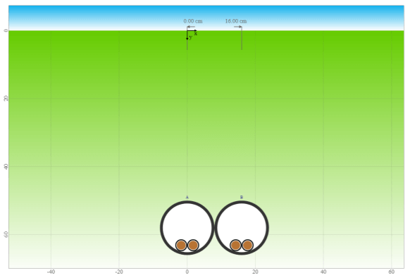In the first case, we will look at a single buried circuit as defined below; first completely isolated and then spaced at 2m clearance from an identical circuit. The CCC of the circuit in both cases will be compared.