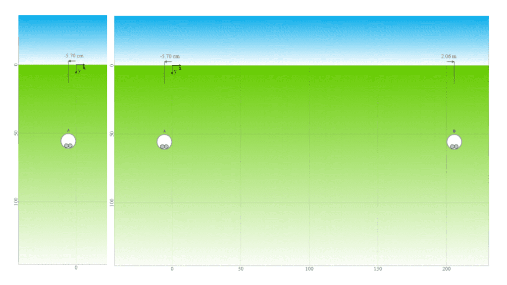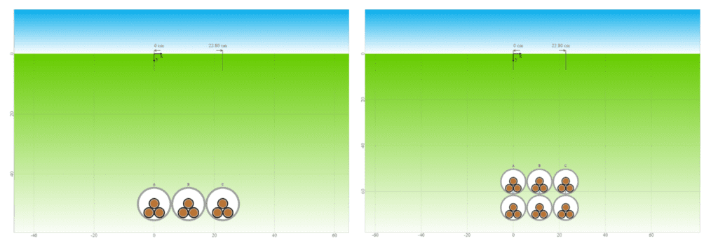 Figure 8: Case 3.1 – 1 circuit in trench (left), 2 circuits with 2m clearance (right)