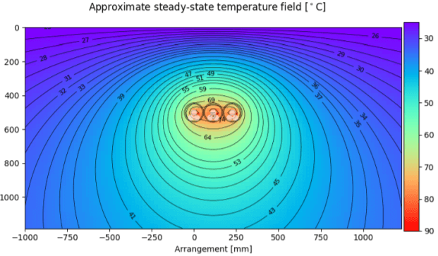 The IEC 60287 calculations will be performed using the Cableizer software package, which uses computational analysis based on IEC standards to calculate thermal cable ratings, i.e. the maximum steady-state current that can be carried by a circuit without exceeding its maximum permissible operating temperature. The software offers a range of different calculation methods published in the international standards (IEC) and other technical specifications. Models can be built with comprehensive specification of electrical, mechanical, thermal and environmental input parameters for site-specific simulations.