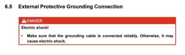 The following excerpt is from the Sungrow SH8.0RS User Manual, which relates to the photo above. This provides a clear example of why external earth terminals must be used.