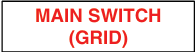 - “Main Switch (Grid)” sticker is to be placed above the grid supply main CB in the switchboard that contains solar. The word “Grid” can be interchangeable with “Mains” and “Normal”. AS/NS 4777.1-2024 6.3 (b)
