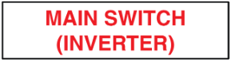 - A sticker to be placed on top of the CB of the Inverter Main Switch in the switchboard. If the inverter has two supplies: a Main Supply (supplementary) and Backup Supply (alternative), please add the supply type to the sign. Ex: Main Switch (Supplementary ). If the installation has two different inverters, a PV Inverter and a Battery Inverter, number the inverters or describe the inverter to accurately differentiate them. Ex: Main Switch (Inverter 1 Supply) or Main Switch (Inverter Sungrow Supply). AS/NS 4777.1-2024 6.3 (a)