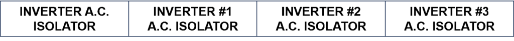 - AC isolators connected to the outputs of inverters should be labelled as “Inverter AC Isolator” and any number or description that accurately represents the device and is correctly matched in the Shutdown Procedures related to it. For example, if the inverter has two AC isolators, one for the Main Supply and another for the Backup Supply, then the isolators will be labelled “Inverter AC Isolator” and “Inverter Backup AC Isolator”. If there are multiple inverters with multiple AC isolators, numbers can be designated to them, such as “Inverter #1 AC Isolator” “Inverter #2 AC Isolator” and “Inverter #3 AC Isolator” AS/NS 4777.1-2024 6.6 & 6.7.