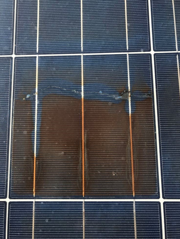 Another way damage can occur is via delamination of the module backsheet causing water ingress into the panel itself and short-circuit of the module current to earth. This usually does not cause fire; however, it does reduce system output and cause the roof to be hazardous